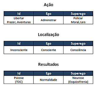 e tudo isso se dá devido à uma ação, reação e consequencia dos chamados Id, Ego e Superego