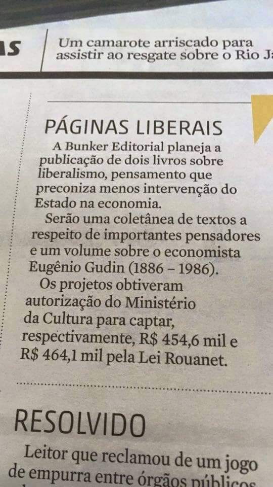 A ironia é que a Lei Rouanet é uma lei que diminui a intervenção do Estado e aumenta a autonomia das pessoas.