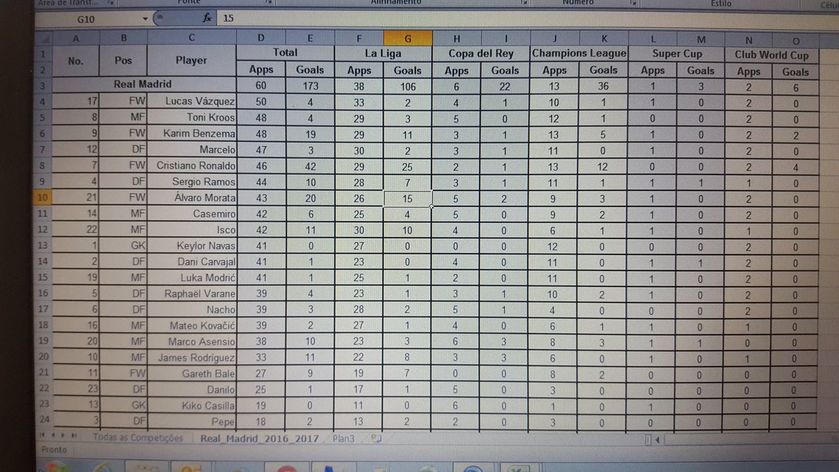 O jogador com mais jogos do Real Madrid na temporada 16/17 foi o Lucas Vasques com 50 jogos. Cristiano Ronaldo fez apenas 46 jogos.