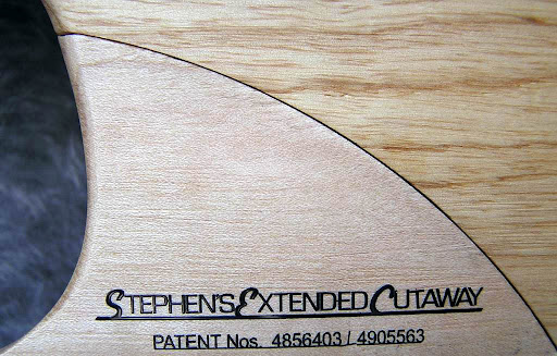 O acabamento do braço será em verniz fosco e do corpo realmente será encerado, e eu também vou inserir o logotipo do Stephen's Extended Cutaway, como na N4 original.Porém, aonde está parecendo o número de patente, eu irei colocar o serial da guitarra.