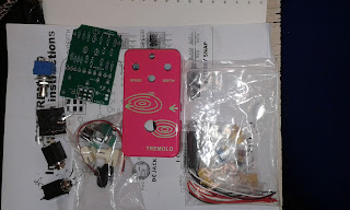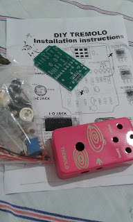 Comprei esses kits da china, para montar pedais. Um overdrive e um tremolo, vou postar o tremolo pois não fotografei a montagem do overdrive. O primeiro que montei foi o overdrive, que é """""INSPIRADO"""""" se é que me entendem, no ts-9 mas usando mosfet 2n7000 e TL082 no lugar de transistores bipolares e o 4558. O som dele é bem legal, troquei o tl082 pelo 4558 porque achei mais legal, no entanto ele funcionou bem com os dois. O mais legal neste pedal é um trimpot na realimentação do amopo que pode deixar o pedal com mais ou menos ganho, achei uma posição que gostei e deixei, não funciona bem com estre trimpot nos extremos. O pedal ficou com o som mais forte do que um ts-9 comum, a montagem foi a pior parte, os furos do jack ficaram baixos demais e a placa fica um pouco torta por causa do pouco espaço, pois a caixa é pequena. Colocar os jacks foi outro desafio. Não recomendo para quem nunca montou pedal, prefiro que estes monte um circuito fuzz simples em uma placa padrão e use uma caixa plastica blindada, depois vai avançando em projetos mais complexos. Pelo preço valeu e muito a pena.