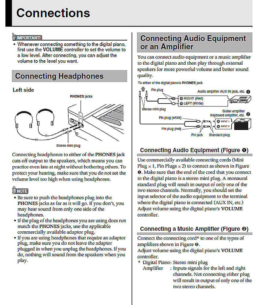 As conexões do PRIVIA PX-135 são assim: